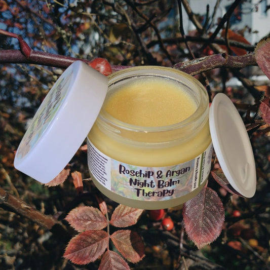 Natural Toxin Free Rosehip & Argan Oil Night Balm Therapy - Organic Shea Cocoa Carnauba Wax Essential Oil 20g & 40g